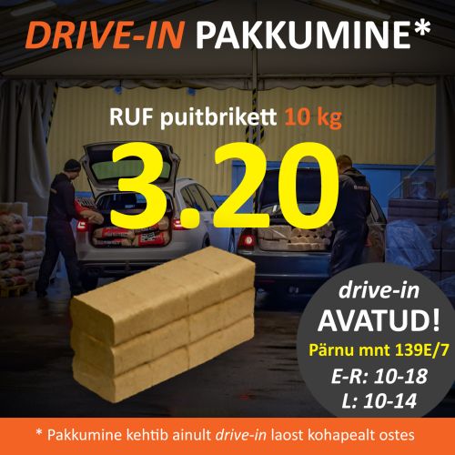 ¤ pakkumine kehtib ainult ise DRIVE-IN lattu kaubale järele tulles. Koju tellimisel vaadake hinda ja transporditingimusi Hinnakirjast: